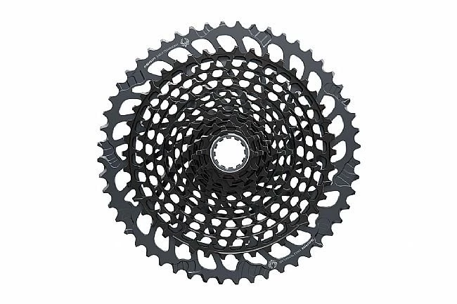 The SRAM Eagle XG-1295 12-speed Cassette features a 50T – 10T spread for a 500% gear range. This incredibly versatile cassette uses SRAM’s X-Dome construction, with the first 11 cogs being machined from a solid block of chromoly steel for excellent durability, mud tolerance, and a low weight. The alloy 50-tooth cog is then pinned to the main body, and they all feature X-Glide 2 cog profiles to improve chain retention and shifting, as well as providing smoother and quieter operation.
