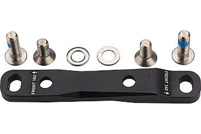 This flat mount disc brake adaptor allows for the use of either 140mm or 160mm rotors on the front wheel. Caliper bolts are included.