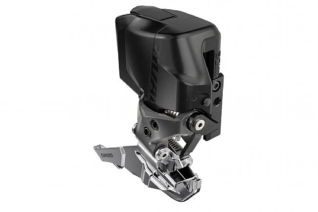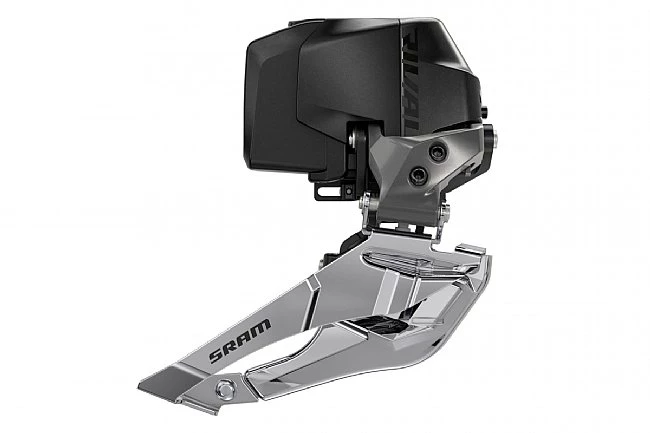 The Rival eTap AXS wide front derailleur is optimized for smaller X-Range chainrings on wide cranks and uses Yaw technology so there’s no need for trim.