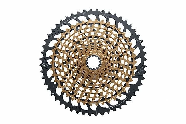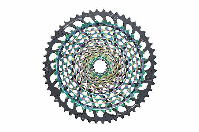 Ti-nitride PVD coated main body. Compatible with hubs using SRAM XD freehub bodies. Claimed weight is 355 g. Cog sizes are 10-12-14-16-18-21-24-28-32-36-42-50.