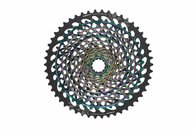 The SRAM Eagle XG-1299 12-speed Cassette features a 50T – 10T spread for a 500% gear range. This incredibly versatile cassette uses SRAM’s X-Dome construction, with the first 11 cogs being machined from a solid block of chromoly steel for excellent durability, mud tolerance, and a low weight. The alloy 50-tooth cog is then pinned to the main body, and they all feature X-Glide 2 cog profiles to improve chain retention and shifting, as well as providing smoother and quieter operation.